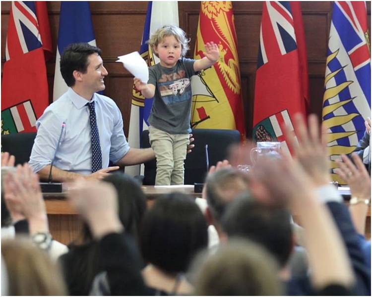加拿大总理杜鲁多携3岁幼子上班 办公室捉迷藏