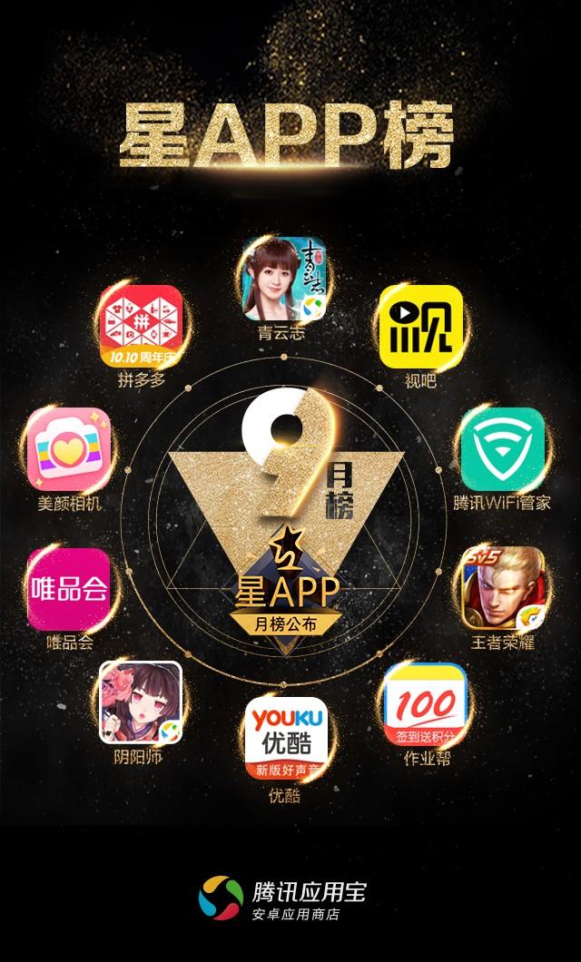 腾讯应用宝发布“星APP”9月榜 “APP依赖症”用户加剧