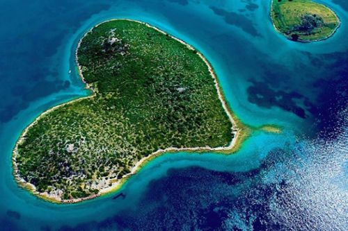克罗埃西亚 - 加勒斯恩杰克岛,位在亚得里亚海上,原本岛主并未开放给游客,由于成千上万的信不断寄送给岛主,之后也终于开放,也被誉为世界最美心形岛屿