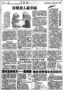 本文摘自:《老人报》2013年9月25日A15版,作者:包光潜,原题为:《汉朝老人最幸福》老吾老以及人之老。在中国汉代,养老敬老制度非常完善,老年人拥有法定待遇。只要年过七十、无人品问题的老者,在“政治”上享受处级待遇,持王杖进入官府不必趋俯,可以与当地的官员平起平坐。虐待老人者,在汉代会被“弃市”处死。 |