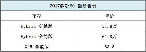 英菲尼迪2017款QX60正式上市 起售价51.8万起