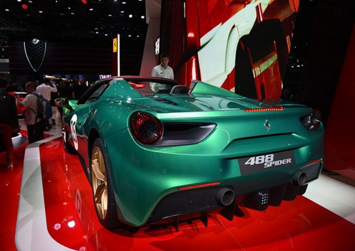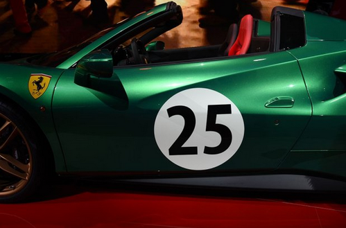 法拉利488 Spider The Green Jewel的配色风格源自1965年的法拉利365 P2,其拥有绿色的车漆,古铜色的轮圈,看上去非常的复古,在车侧还配有70周年的纪念LOGO。