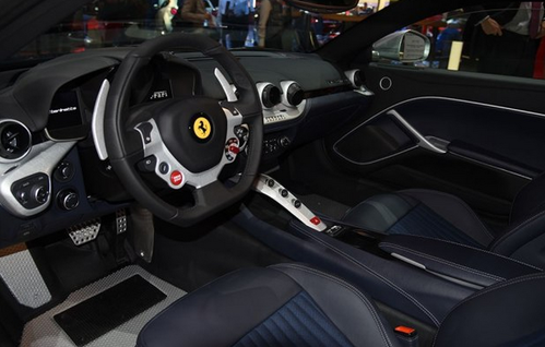 F12berlinetta The Stirling采用了与诞生于1961年的法拉利250 GT BERLINETTA SWB车型相同是配色风格,拥有蓝白相间的喷漆,整体配色很有特点。