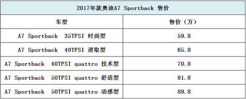 2017款奥迪A7Sportback正式上市 售价59.8万起