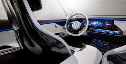 车内中控系统用极宽的24英寸液晶显示屏取代了传统的仪表盘,方向盘的三根辐条上有两根上安装有 OLED 触摸屏,驾驶员可用手指点击菜单控制车辆。奔驰官方表示,Generation EQ 已经很接近生产,但是并未透露具体量产时间。