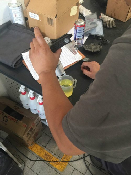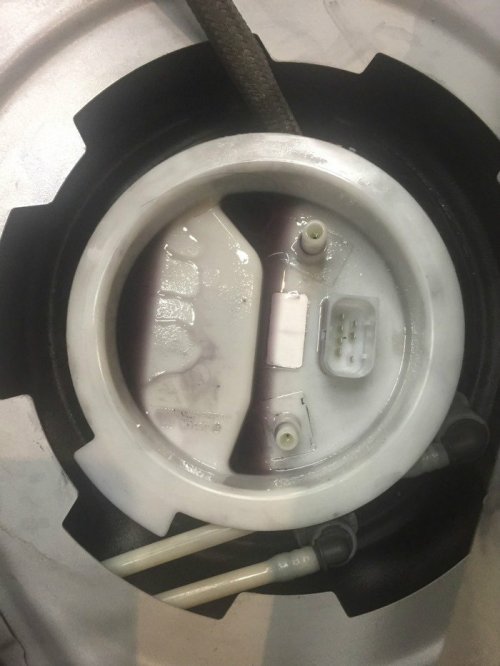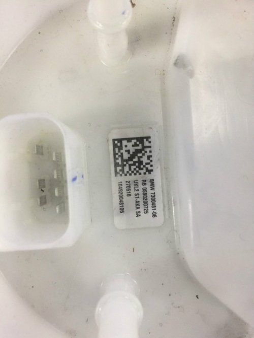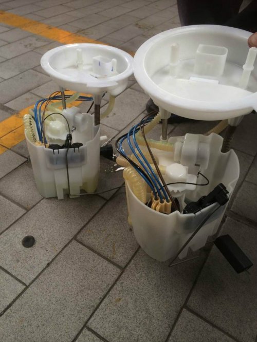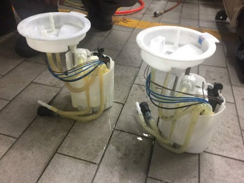 下午我抽空陪老婆去了一趟医院,在医院接到售后顾问来电,意思是说之前的检测都没发现问题,现在只能通过更换燃油泵的方法来解决,我问他进口车备件是不是都要等很久,他跟我说仓库正好有全新进口原厂配件,并且答应拍摄油泵更换的照片给我。回到了车间发现油泵已经更换完毕。可当我接收了销售顾问的照片之后发现他们换的油泵顶部无标签,油管发黄,怀疑是否是全新备件。
