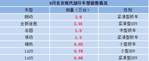 轿车和SUV销量均稳步上升 北京现代汽车9月销量同比增长15%