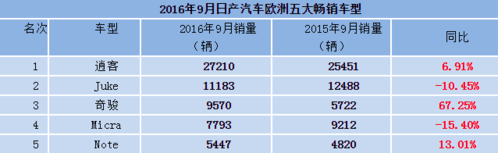 日产汽车9月欧洲市场销量同比微增1.1% 奇骏销量激增67%