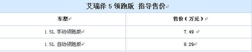 奇瑞官方宣布新车艾瑞泽5领跑版上市 售7.49万起