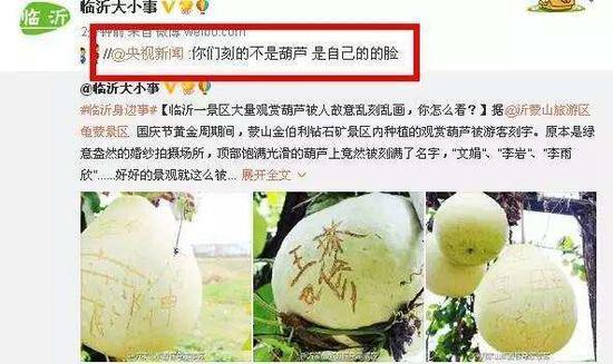 景区观赏葫芦被人乱写乱刻 惨不忍睹