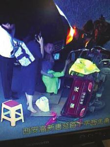 胡先生说,10月4日是他们来西安游玩的第三天,下午他们在兵马俑游玩后准备返回西安的宾馆,“大概6点10分,我开着车沿丈八东路立交桥下桥口十字,准备左转时和一辆电动三轮车撞上了,导致三轮车侧翻,三轮车上坐着的一男一女受伤,两人50岁左右。”胡先生说,他下车查看时,在附近执勤的一名交警赶了过来,“因为伤者头上流血了,交警就跪在地上,还把警服里的T恤脱下来撕成布条为伤者包扎伤口,并让行人赶紧报警联系120。我记得还有一名女士帮忙打电话,太感谢这些热心人了。”