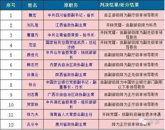 在2016年落马的31名高官中,有12人被降职处理。