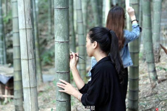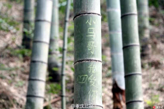 广东景区推出刻字林 2天100多根竹子被游客刻字