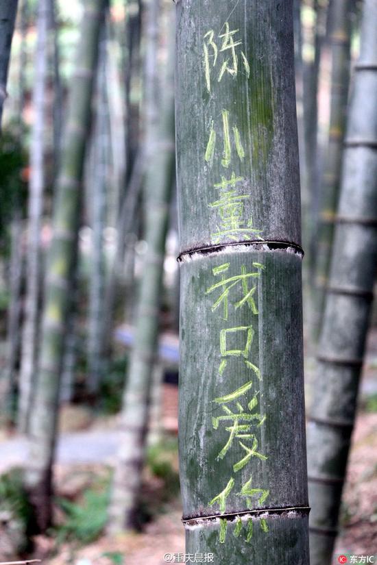 广东景区推出刻字林 2天100多根竹子被游客刻字[+展开简介]