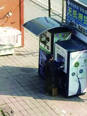 近日,家住回龙观龙腾苑六区的一网友反映称,安放在他家楼下的衣物回收机被人“偷袭”。北京晨报记者从他在网上发的图片中看到,一女子脚踩小凳子,半个身子探进投放口,可能是没够到衣服,她干脆双脚离凳一头“栽”进回收机,再次出来时,她怀里抱着10件左右衣物(如图)。据该网友说,该女子不止一次顺手牵“衣”了。