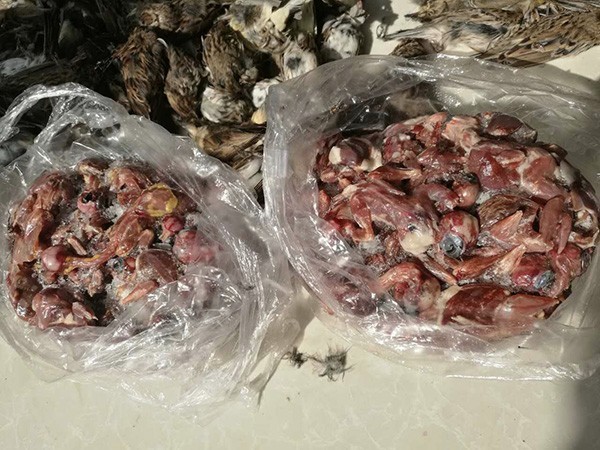志愿者介绍,催肥后活着的候鸟会被鸟贩子直接装进塑料袋子里闷死,随后放进冷库里冷冻,以待转运到南方变成餐桌上的菜肴。