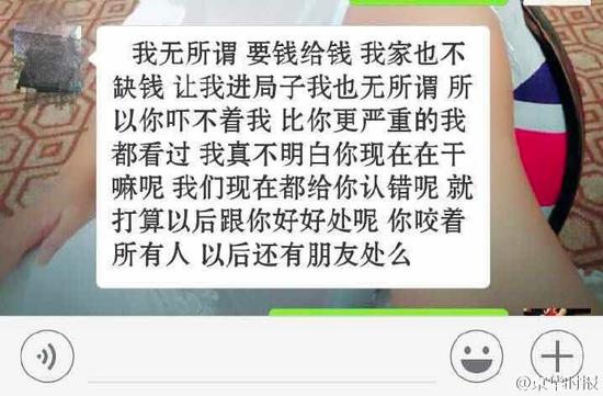 [两女生#寝室内遭同学殴打#致嘴角撕裂 打人女生发朋友圈晒图:已对警车免疫]10月11日凌晨,北京航空旅游专修学院航服二班学生陶陶和果果在寝室内遭到同班7名女同学殴打,果果唇部有撕裂伤,头部和额头有肿块,身体多处出现淤青和划痕。陶陶右额头有紫红色肿块,面部及膝盖多处受伤,并伴随头晕头疼等症状。 参与打人的学生小飞曾于10月9日因外出喝酒、顶撞老师受到校方留校察看处分。事发后,她曾给果果发微信表示“要钱给钱,让我进局子我也无所谓。”该学生被警察带走后,通过微信朋友圈发布警车及警察照片,并配有“已经对警车免疫”、“这次几日游”等调侃类文字。10月14日,陶陶和果果在家人陪同下报警。校方学生处一乔姓老师在接受京华时报记者采访时表示,校方将配合警方调查。