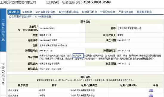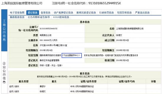 而上海英锐国际教育管理公司在公示系统中的资料显示,也不包含留学中介业务。