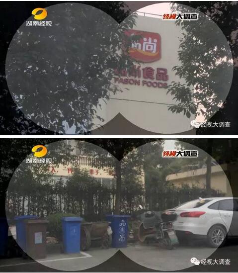 在门卫值班室,上海市松江区市场监督管理局的两名执法人员,正24小时对品尙公司进行监管。厂区里面黑漆漆的,空无一人。而在厂门口的垃圾桶里,记者发现不少可疑的包装物。