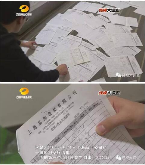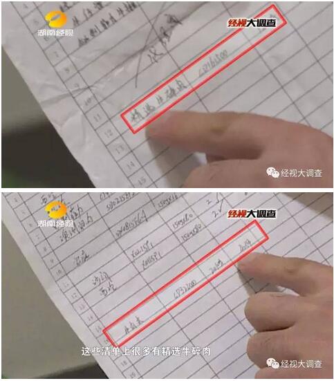 除了再次发现用于加工碎肉的化学添加剂——谷氨酰胺转氨酶。这次记者还找到了大量“原料成品交接清单”。这些原始单据中记录了大量的牛肉末、碎牛肉等内容。