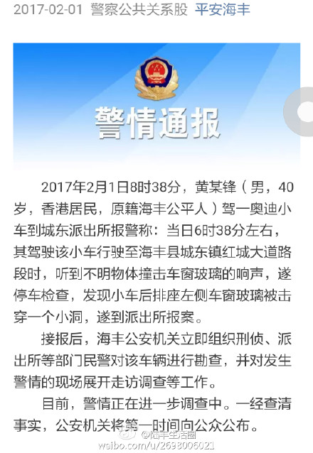 之后,黄竣锋去报警,不知道事件究竟是持枪抢劫还是有其他内情,不过,黄竣锋指自己没有跟任何人有积怨,应该是抢劫,一切留下公安去查证,黄竣锋事后接受《东网》访问,仍心有余悸,刚通宵拍完戏的他,声音沙哑地表示:“真的有劫后余生的感觉,也都是不幸之中的大幸,车速慢一点、快点都有可能打中头的。”针对事件,当地警方正在进一步调查。