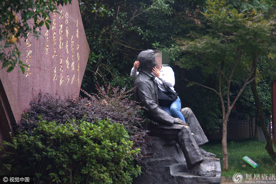游客坐毛主席雕像大腿上拍照 又搂又抱伤风范