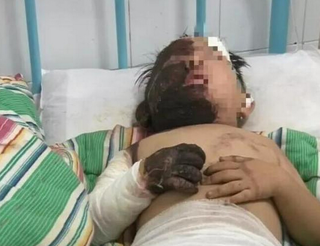 三岁小孩不慎跌进热油锅 半边身子被烫伤