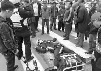 外卖小哥撞倒协警倒地不起 医护称其啥事没有