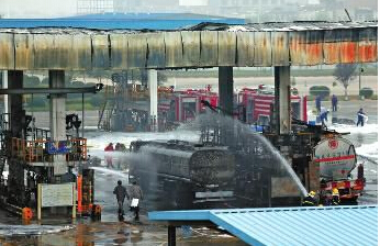 陕西油库油罐车加油时爆炸起火 旁边车辆遭引燃