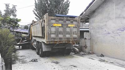 货车撞坏民房 事故现场一个多月没撤除