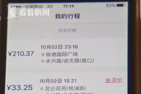 乘客夜间打车11公里被扣210元 同里程白天33元