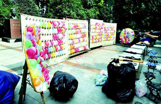 英雄塑像前小贩摆摊射气球 网友称对英雄不尊重
