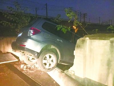女子驾车途中为躲避小猫 撞穿路边围墙