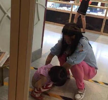 孩子尿急在商场内小便 妈妈没清理尿渍就离去