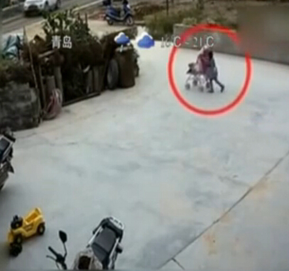 小哥哥失手将女婴推进池塘 路人施救后转身离开