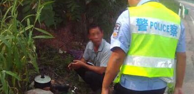 细雨中 民警为事故伤者撑伞遮雨近20分钟