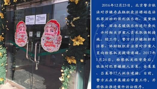 北京扫黄3间夜场77人遭逮捕 保利俱乐部招揽车模下海