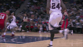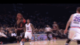 最容易秀弹跳的莫过于扣篮了,不少球星在扣篮时的腾空高度已经高过了篮筐,为了保护自己,他们不得不向篮筐低头。威斯布鲁克和受伤前的罗斯都是这样的飞行家