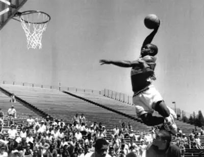 NBA里最精彩的故事莫过于“山羊(the Goat)”在篮板上沿放硬币的传奇。不过这事儿大家都只是听说过,却谁也没见过。可是球员们秀弹跳的脚步却从来都没停止过。