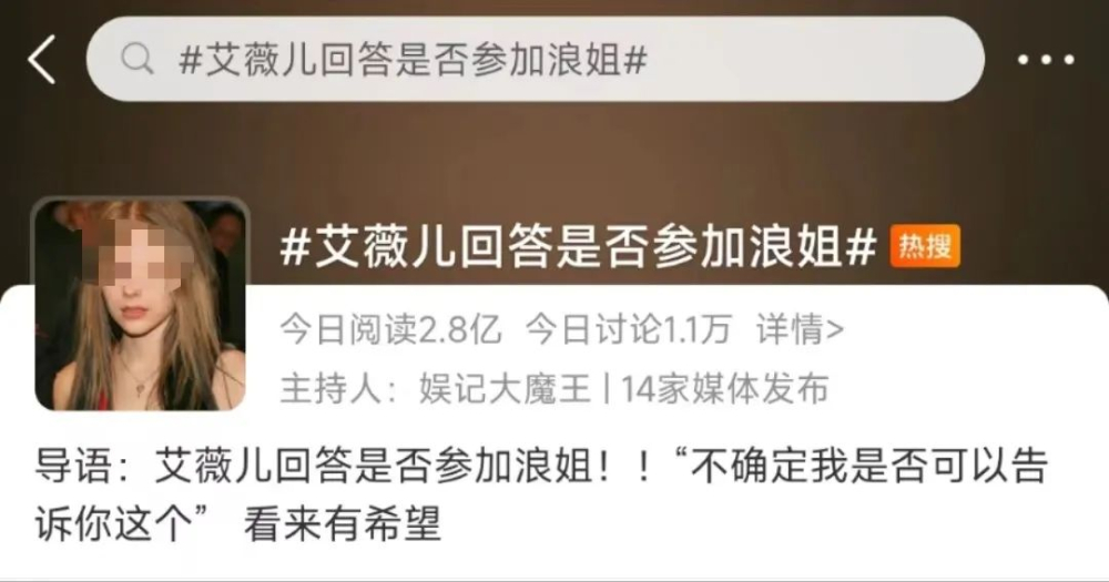 此消息一出,话题#艾薇儿否认参加浪姐#再次登上微博热搜榜,截止出稿前其阅读量高达3.2亿,讨论次数为2.2万,网友纷纷评论表示:这热度蹭的好啊、是懂炒作的!!