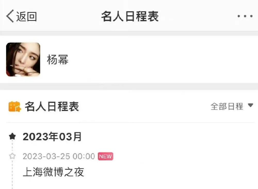 距离“微博之夜King Queen”奖项开启投票活动已经有一段时间了,今日下午,杨幂超话的名人日程表已经显示了上海微博之夜的行程,虽然没有官宣,但也算是差不多确定了的。