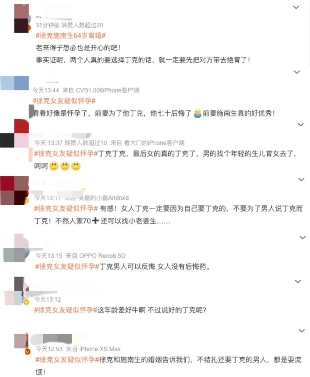 #徐克女友疑似怀孕#、#徐克小30岁女友#、#徐克施南生64岁离婚#、#施南生徐克 丁克#