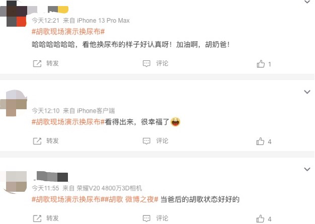 “看他换尿布的样子好认真呀!加油啊,胡奶爸”