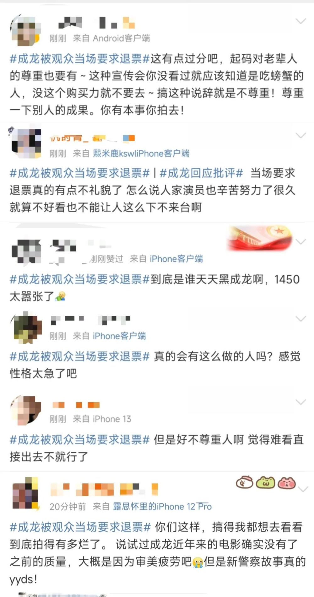 上述事件被曝光后,迅速引起网友广泛热议!不过,还是有许多网友是站在成龙这边的,纷纷表示叫退票就有点过分了吧! 评论称道:👇