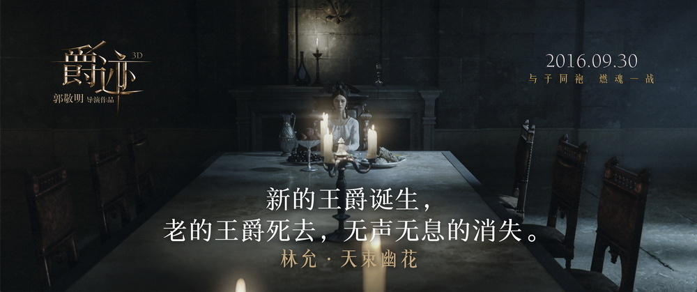 电影《爵迹》改编自郭敬明于2010年出道十周年发表的纪念长篇小说,由郭敬明亲自执导,范冰冰、吴亦凡、陈学冬、陈伟霆、郭采洁、林允、严屹宽、王源、汪铎主演,杨幂特别出演,李治廷友情出演,乐视影业(北京)有限公司、上海最世文化发展有限公司、江苏原力影业有限公司、和力辰光国际文化传媒(北京)股份有限公司、上海腾讯影业文化传播有限公司、狮门中国(英国)有限公司、星光麦特传媒集团有限公司、无锡爱美神影视文化有限公司、万达影视传媒有限公司、微影时代影业无锡有限公司、千和影业(北京)有限公司出品。电影《爵迹》已于9月29日晚22点提前公映,燃爆国庆档