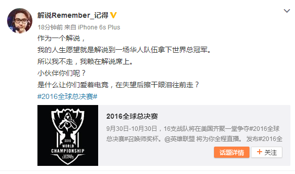 随着今天上午EDG战队1比3不敌ROX止步八强,所有LPL赛区的队伍也都已经结束了本次LOL S6总决赛的征程,听听电竞圈的名人们都是怎么评价的吧!
