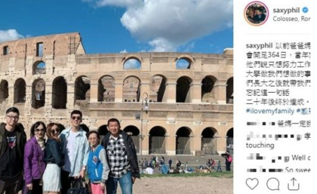 林奕匡透露:「以前爸爸妈妈在餐馆裡时365日就会开足364日,当年我问他们为何不放假,他们说只想努力工作,希望我和哥哥能够读大学做我们想做的事,随意地就加一句『你们长大之后就带我们去欧洲玩』。」他直言,从来没有忘记这一句话,20年后终于达成。并附上hashtag「#ilovemyfamily #感恩 」