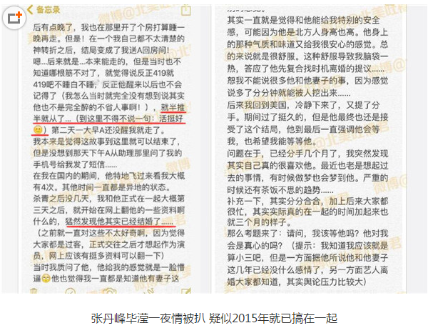 事情越闹越大,张丹峰经纪人毕滢出面澄清,并承认自己确实穿着浴袍经过张丹峰的房间。但她称这没什么,因为平时就是这样相处的。让人奇怪的是张丹峰老婆洪欣也为他们两人发文开脱,表示:“我在的时候,毕滢也穿着浴袍进来找张丹峰,很正常!”洪欣觉的正常,可网友觉得问题大了,于是开始深扒毕滢的浴袍照,没想到找到了一张这样的微博。