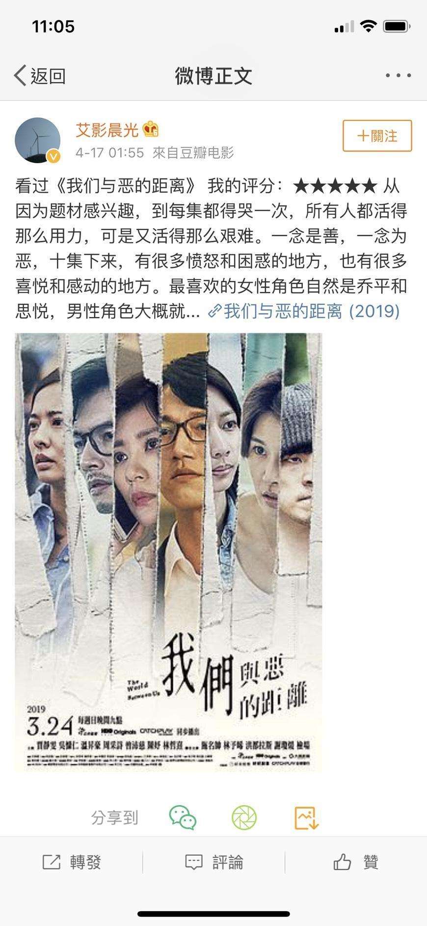 由公视、HBO Asia、Catchplay三方平台联合推出,贾静雯、温昇豪、吴慷仁等人演出的电视剧《我们与恶的距离》,自3月播出以来话题性不断,收视率也逐步上升。但原定本週日(4/21)才要播出的第9、10集大结局,却已在先行洩露。