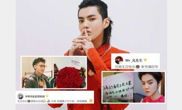 至于Kris的南京演唱会现场,就有网民甫出鹿晗和Tao各自送上的花篮,鹿晗的祝福卡亲笔写著「你看这个麵它又长又宽,演唱会必须成功咔咔的」;Tao的祝福卡则是「祝演唱会圆满成功,加油,就是干!」Kris虽然忙开骚,但都有发文贺鹿晗:「兄弟生日快乐;新专辑好听」。